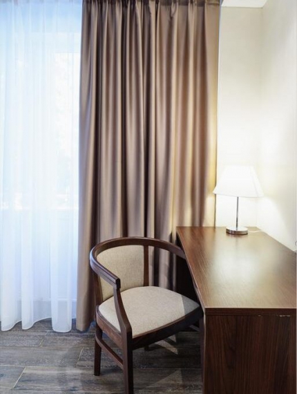В номере: одна двуспальная кровать или две односпальные кровати, прикроватные тумбочки, туалетный столик или рабочий стол, зеркало, стул, шкаф, Wi-Fi, кондиционер, телевизор, холодильник.