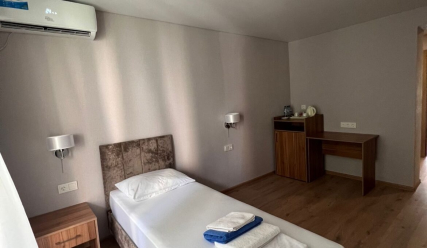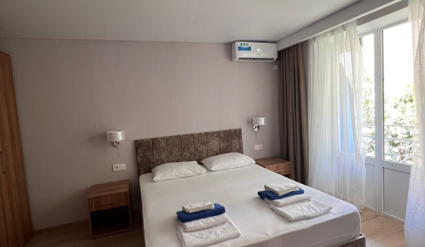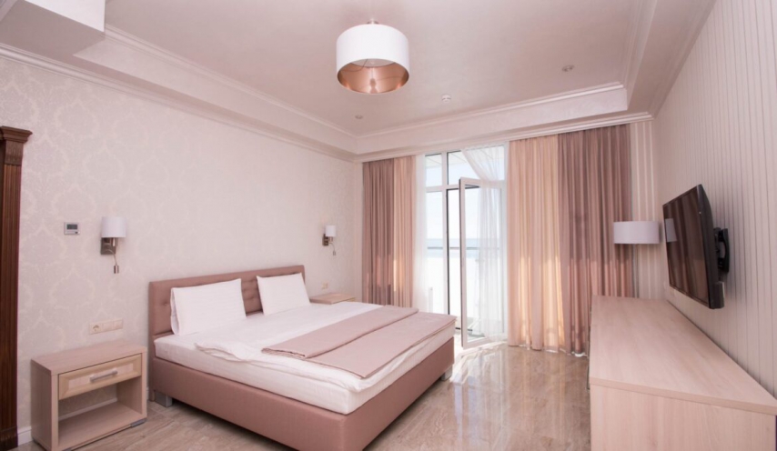 Количество номеров – уточняется. Площадь – 18 кв.м. Балкон – да, вид на море, с мебелью для отдыха.